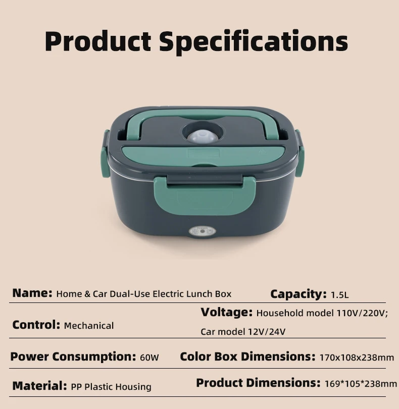 2.Portable and convenient: No Need to looking for a microwave and wait in line for heating, heat up your food with the electric heating lunch box at home/office or in car/truck using the 110V/220V+12V+24V power cables.