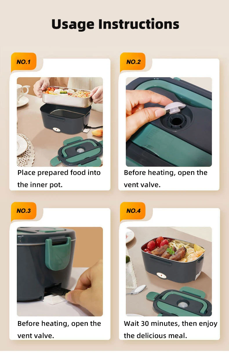 1.Leak-proof design: The electric lunch box has a leak- proof design that ensures your food stays fresh and doesn't spill out.
